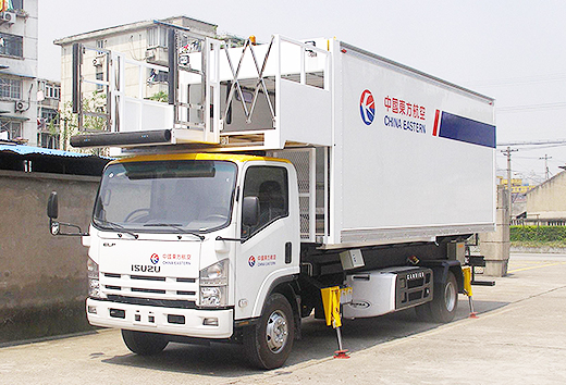 CT-SP550食品車為安裝在ISUZU NPR商用底盤上的飛機食品車,通過液壓剪刀機構實現廂體的升降。此車型可服務于艙門高度為2500mm到5500mm的所有機型,包括A318, A319,A320,B707, B727, B737, B757, B767, DC8, DC9, 1L-18, 1L-62, MD11, MD80等。